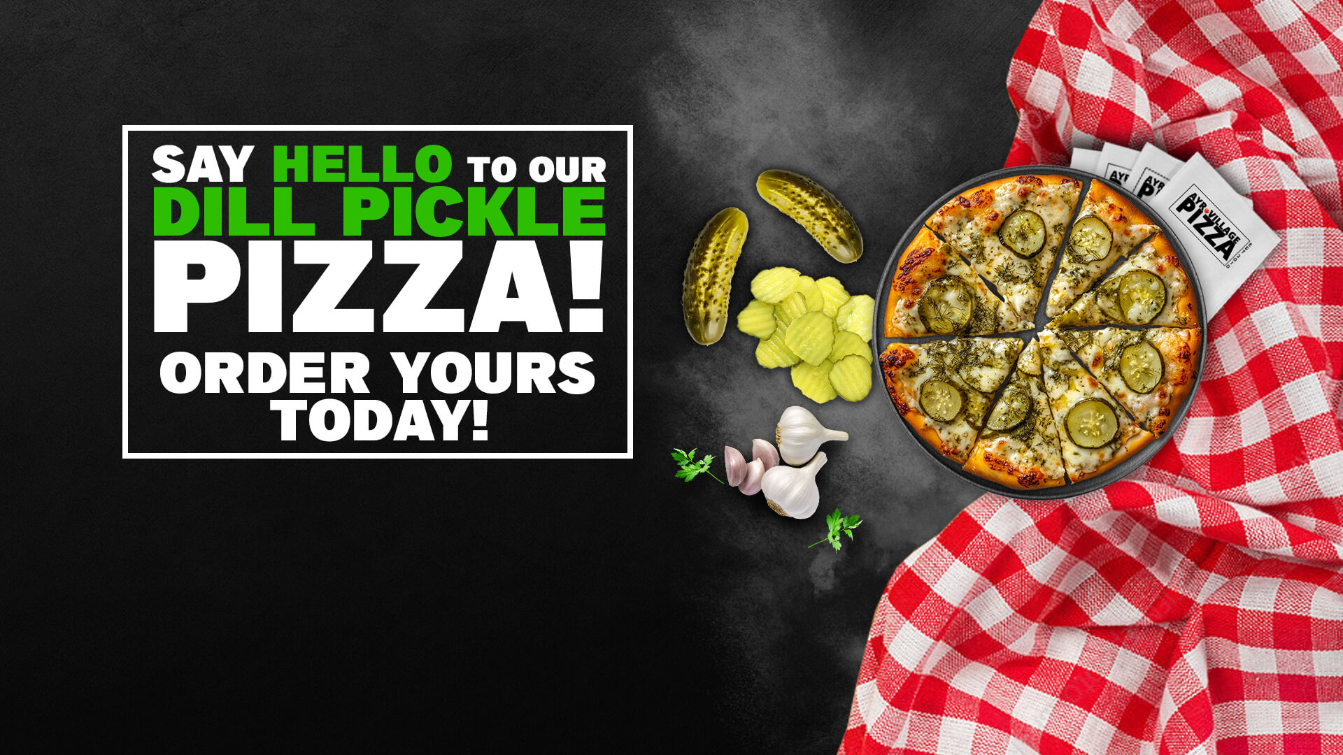 1 medium or large 3 topping pizza, 1lb of chicken wings with your choice of garlic bread with cheese or 1lb of potato wedges